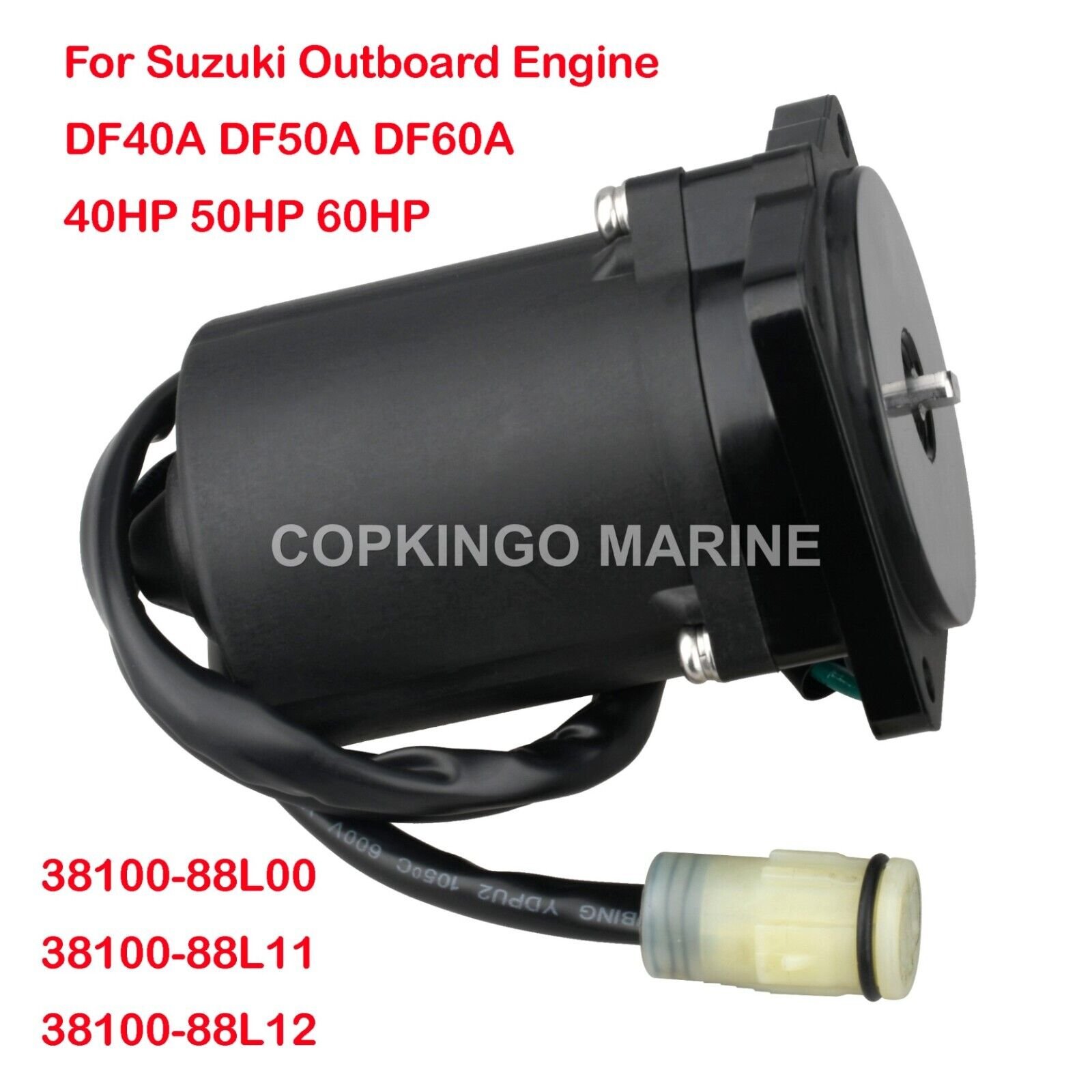 Trim motor 38100-88L00 / 38100-88L11 / 38100-88L12 for Suzuki DF40A, DF50A and DF60A. Trim motor Suzuki DF40A 2011 04003F-110001 to 04003F-11XXXX. Trim motor Suzuki DF40A 2012 04003F-210001 to 04003F-21XXXX.