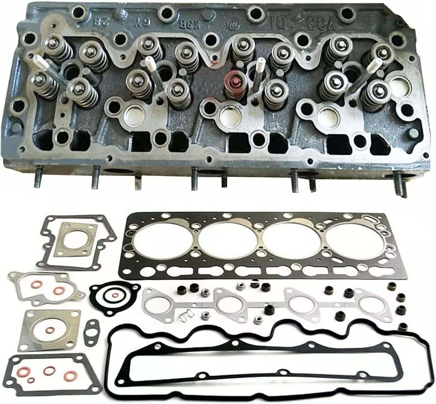 Complete Cylinder Head Assy & Full Gasket Set For Kubota V3300 V3800 16V Engine