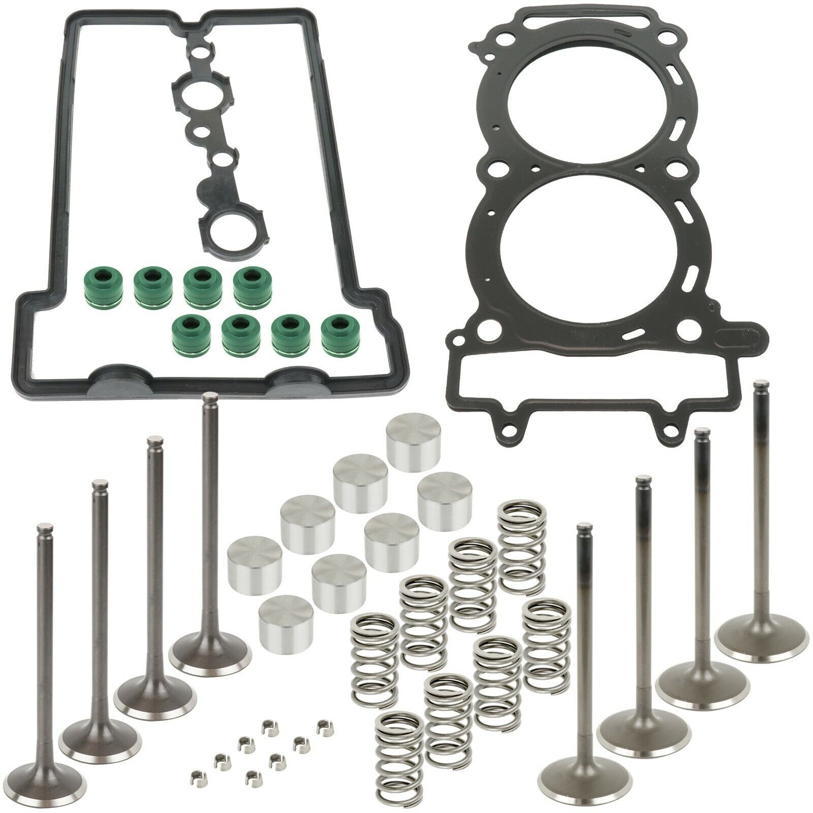 RZR XP 900 EFI 2012. RZR XP 900 INTL 2012. CYLINDER HEAD VALVE GASKET KIT. POLARIS UTV. 1 Cylinder Head Gasket. 4 Intake Valves (53Cr21Mn9Ni4N special steel). 8 Valve Springs. 16 Valve Collets.