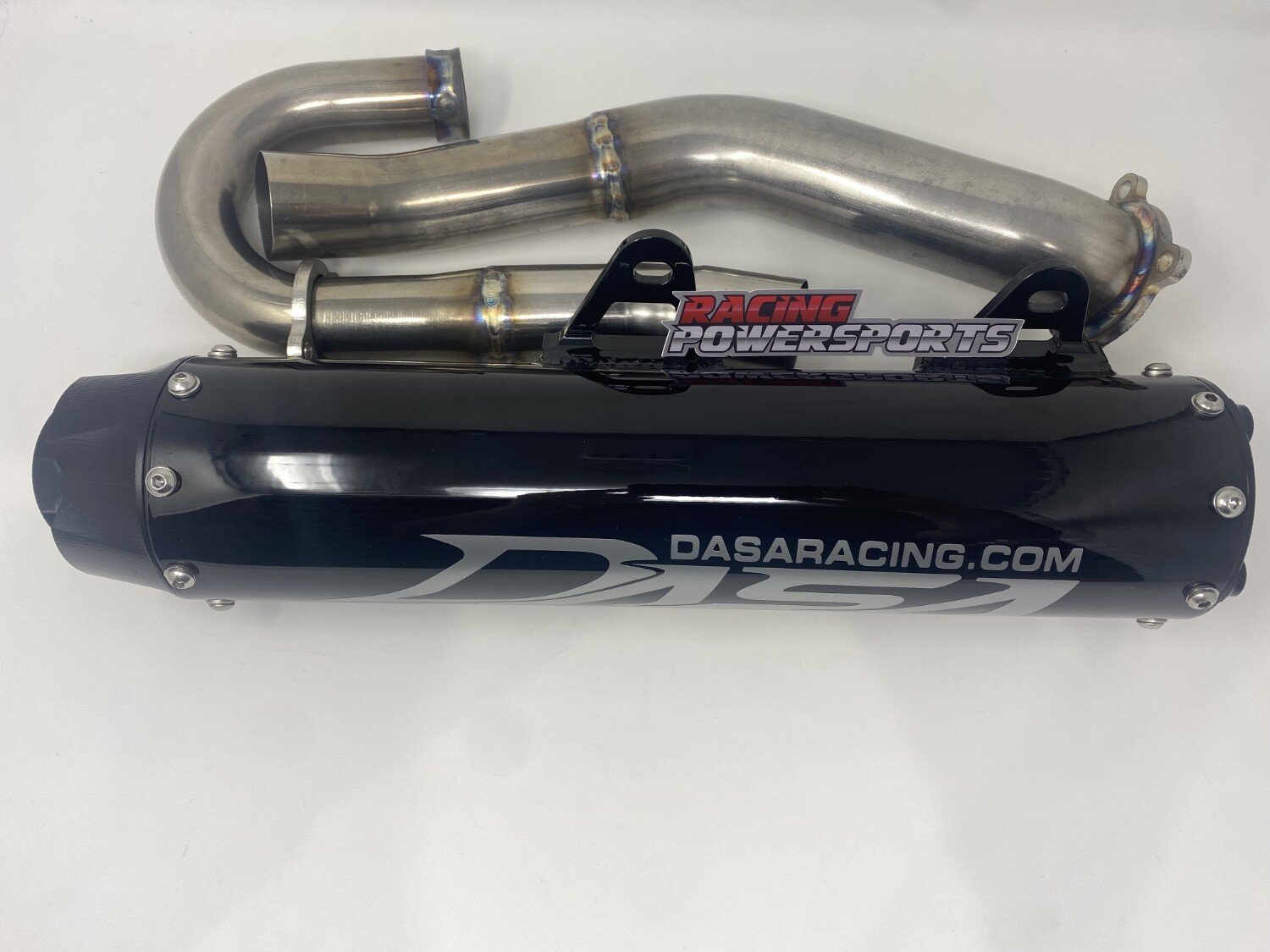 All Yamaha YFZ450R Dasa exhaust systems are handmade here in the USA and the quality really shows with perfect tig welds, trick billet end caps, a billet canister mount, thick head pipe flange and the end caps do unbolt for easy canister repacking. The Yamaha YFZ450R Dasa exhaust system has been proven on the dyno to make big HP throughout the entire power curve. This is a multi-step, stainless steel exhaust system that includes a head pipe, mid pipe, and an exhaust canister. .