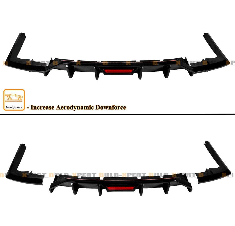 KDM Sporty Design Rear Bumper Shark Fin Diffuser With Red LED Light + Corner Extensions Aprons Kit For Elantra. Both The Diffuser And Corner Splitters Are Direct Add-On To The Rear Bumper. Gives Your Car A Sporty Rear End Instantly.