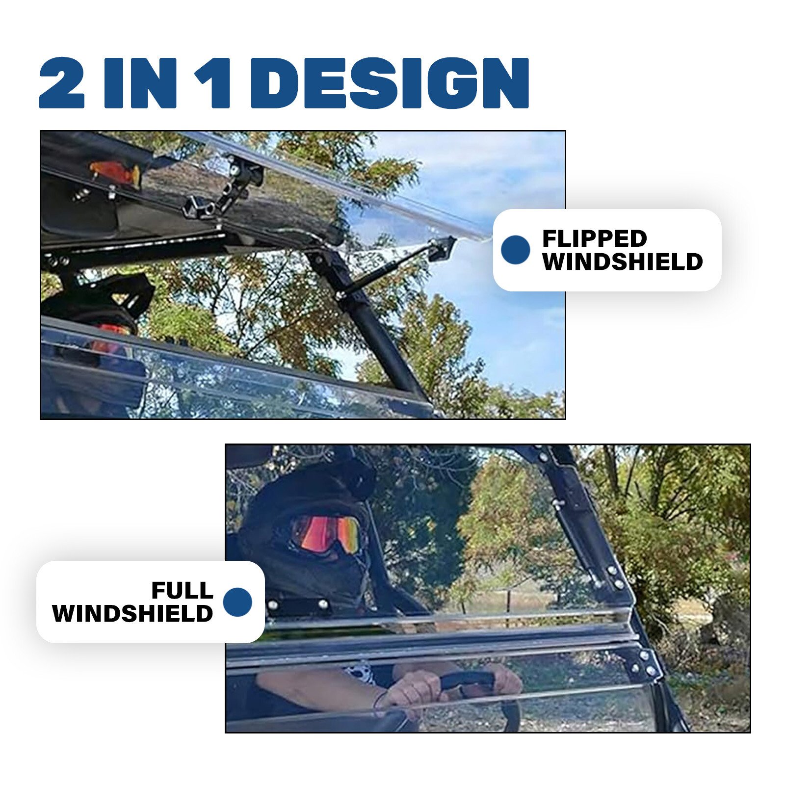 For Kawasaki Teryx 750 800 12-15 Front 2-in-1 Folding Windshield Windscreen