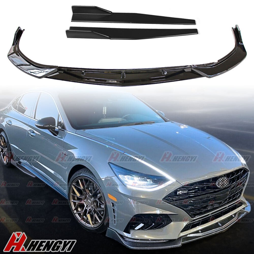 Fits For Hyundai Sonata 2020-2023. 1set Front Lip Chin Bumper Body Kits. Type:Front Lip Chin Bumper Body Kits. 1set Side Skirt. Color:Gloss Black. Easy install and durable use. Direct Fit.