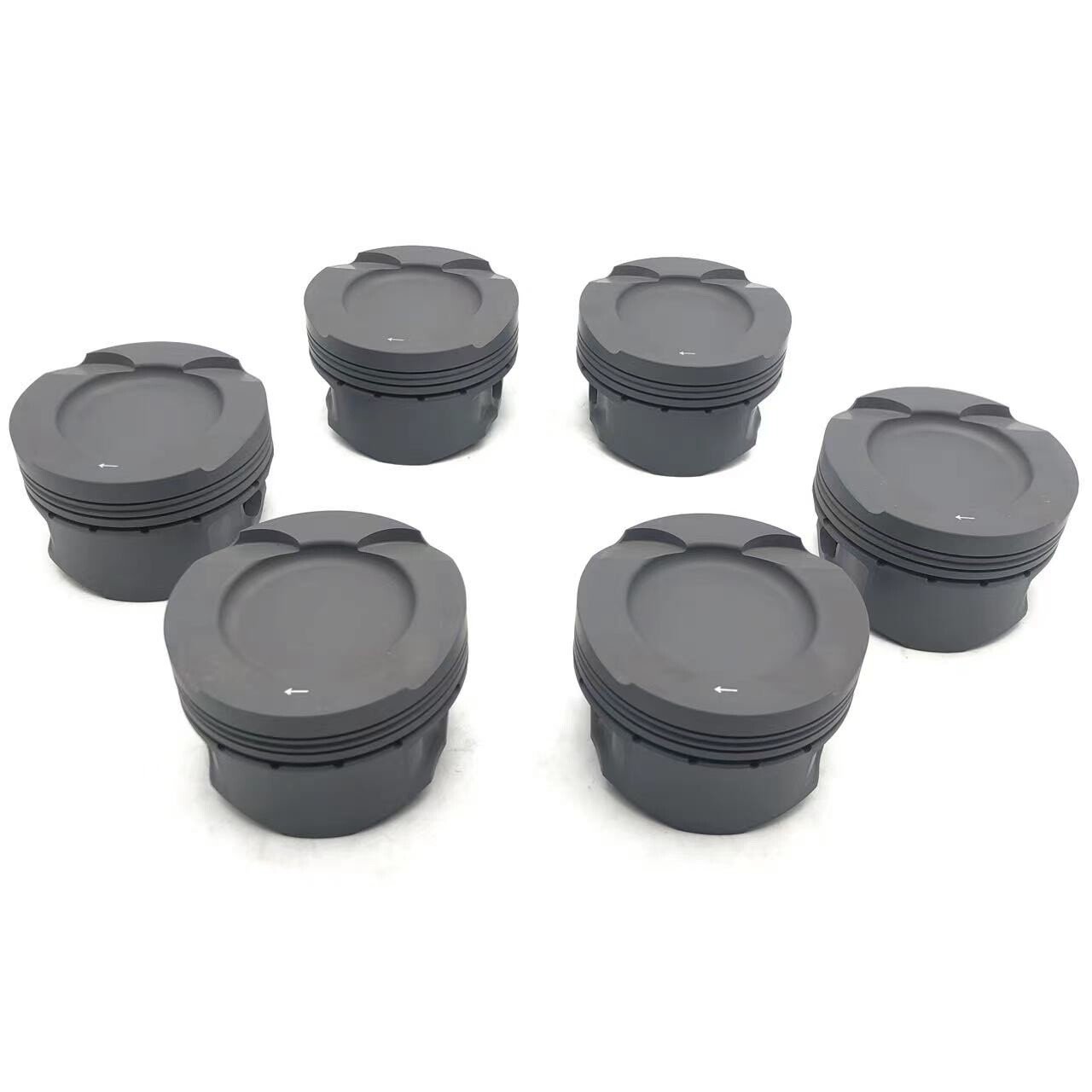 6 pcs Forged Pistons with pins and rings For BMW N55B30. BMW – 3 Series 2010 -2013 (E90/E91/E92/E93) 335i. Piston x 6pieces. Piston pin x 6 pieces. Piston ring x 6 cylinders. Piston Material 2, Moly Coated on skirts, for reducing the friction of Piston Skirt with Cylinder Wall.