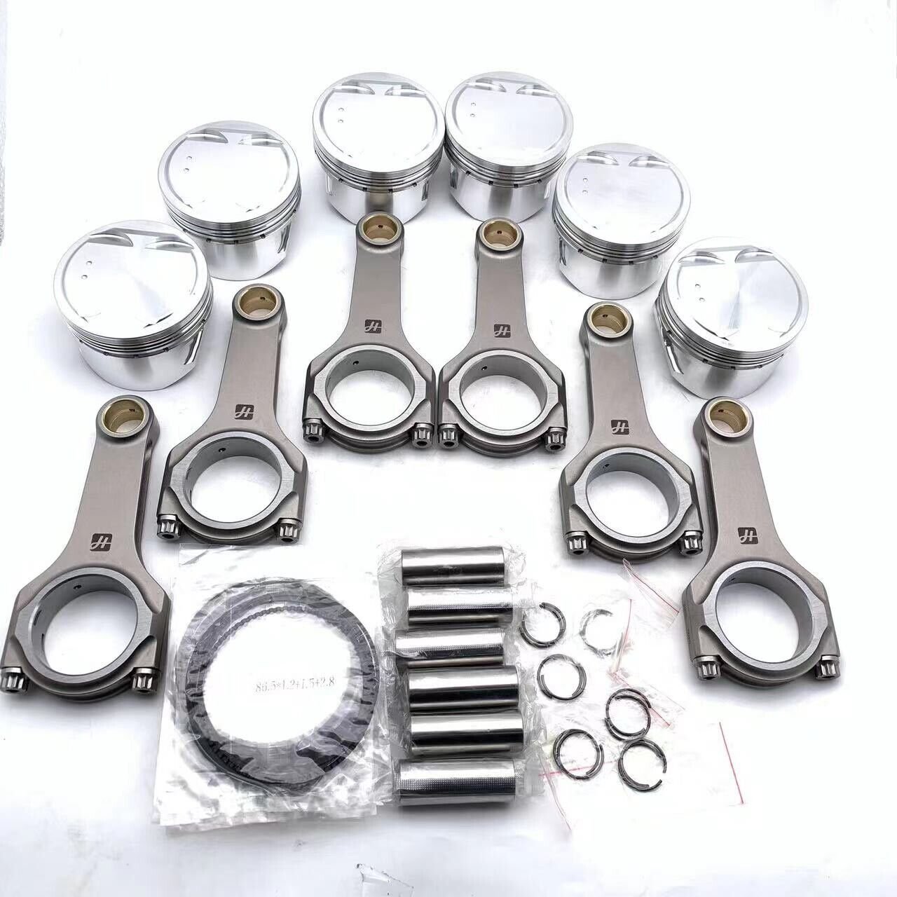 6 pcs Forged Pistons with pins and rings and 6 pcs H-beam forged Connecting Rod For NISSAN RB25DET NEO Skyline 121.5mm center length with high quality Bolts. RB25DET NEO. Connecting rod x 6. Piston x 6.