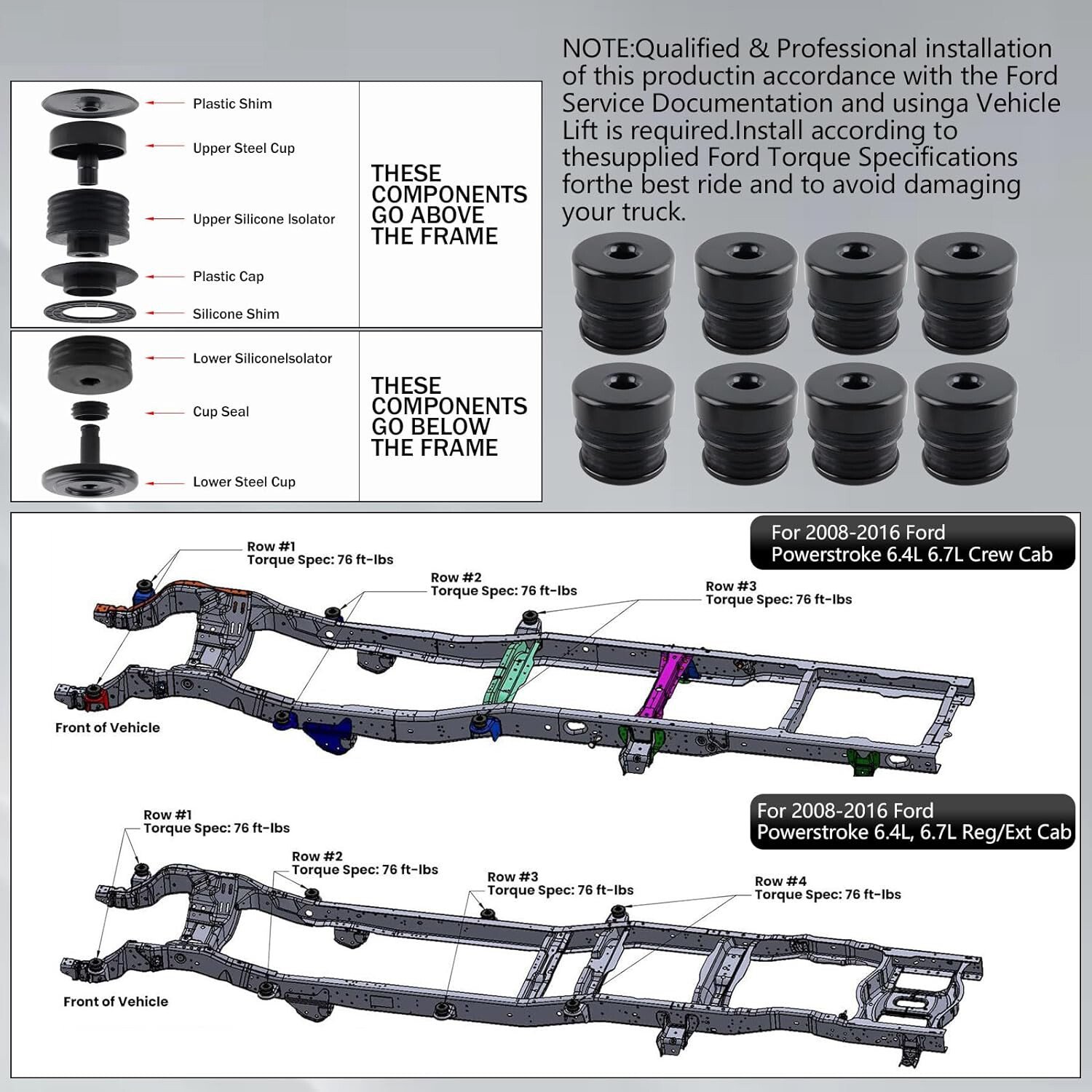 Silicone Body Mount Bushing Kit for Ford F250 F350 2008-2016 Super Duty Crew Cab